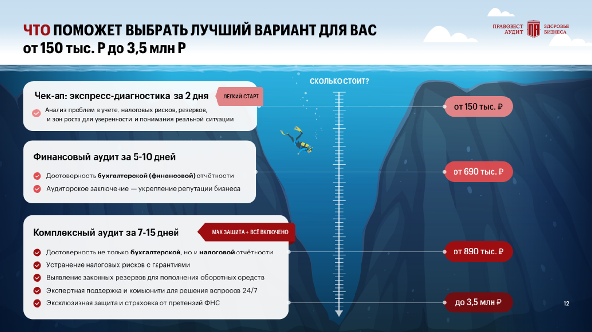 В летний период есть возможность провести рисков бизнеса. Этот чек-ап позволяет получить срез проблем в учете, налоговых рисков, финансовых резервов и зон роста для уверенности и понимания реальной ситуации в бизнесе.