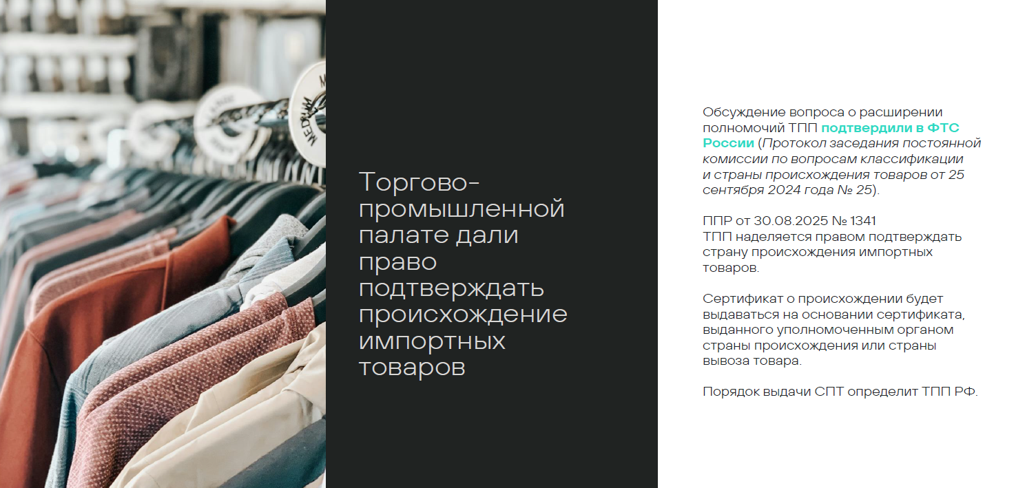 Однако в этом вопросе наметился сдвиг. Правительство Постановлением № 1341 от 30 августа 2025 года наделило Торгово-промышленную палату РФ (ТПП) правом подтверждать страну происхождения импортных товаров. Ожидается, что ТПП разработает порядок выдачи таких сертификатов, что должно упростить импортерам подтверждение «дружественного» происхождения товаров и защитить их от необоснованного применения повышенных пошлин. (Примечание: к моменту публикации такой порядок утвержден Приказом ТПП РФ от 26.09.2025 № 67)