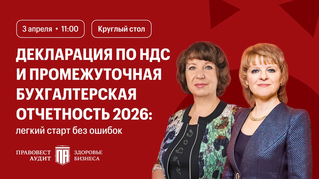 На Круглом столе 03.04 рассмотрели изменения по НДС с 01.01.2026, в том числе «популярные» вопросы перехода на ставку 22%, обновленные формы декларации по НДС, счетов-фактур, книги продаж и покупок. Обсудили особенности составления промежуточной бухгалтерской отчетности (сроки, формы, объем и др.) и ваши вопросы.