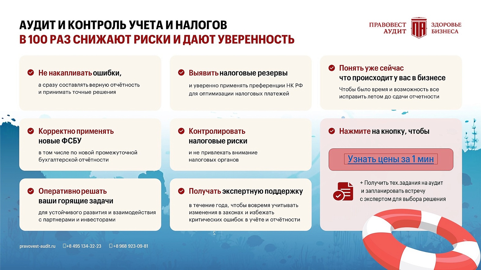 Стоимость в 100 раз ниже суммы потенциальных убытков, связанных с невыявленными налоговыми ошибками и отсутствием соответствующих гарантий защиты от претензий ФНС.