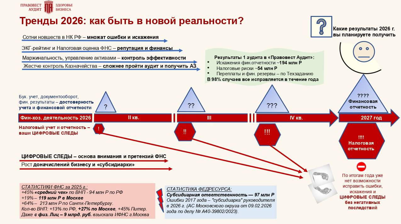 При выборе аудита сейчас важно учитывать все тренды 2026 года, влияющие на финансовую устойчивость, безопасность бизнеса.