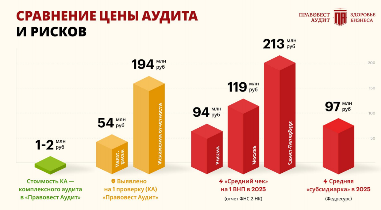 Статистика «Правовест Аудит» , что в среднем искажения финансовой отчетности на 1 аудиторскую проверку составляют 194 млн руб.
