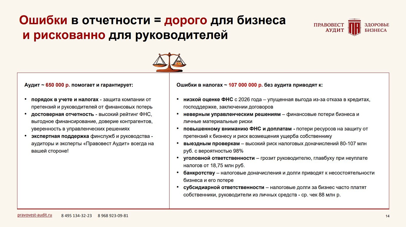 Налоговый контроль продолжает совершенствоваться, в т.ч. убирая риск субъективного подхода к контролю. Экстерриториальность в камеральном контроле продолжение цифровизации и усилением налогового администрирования, а это требует от налогоплательщиков своевременного диагностирования (т.е. выявления налоговых ошибок и упущений) для снижения рисков доначислений и финансовых потерь.