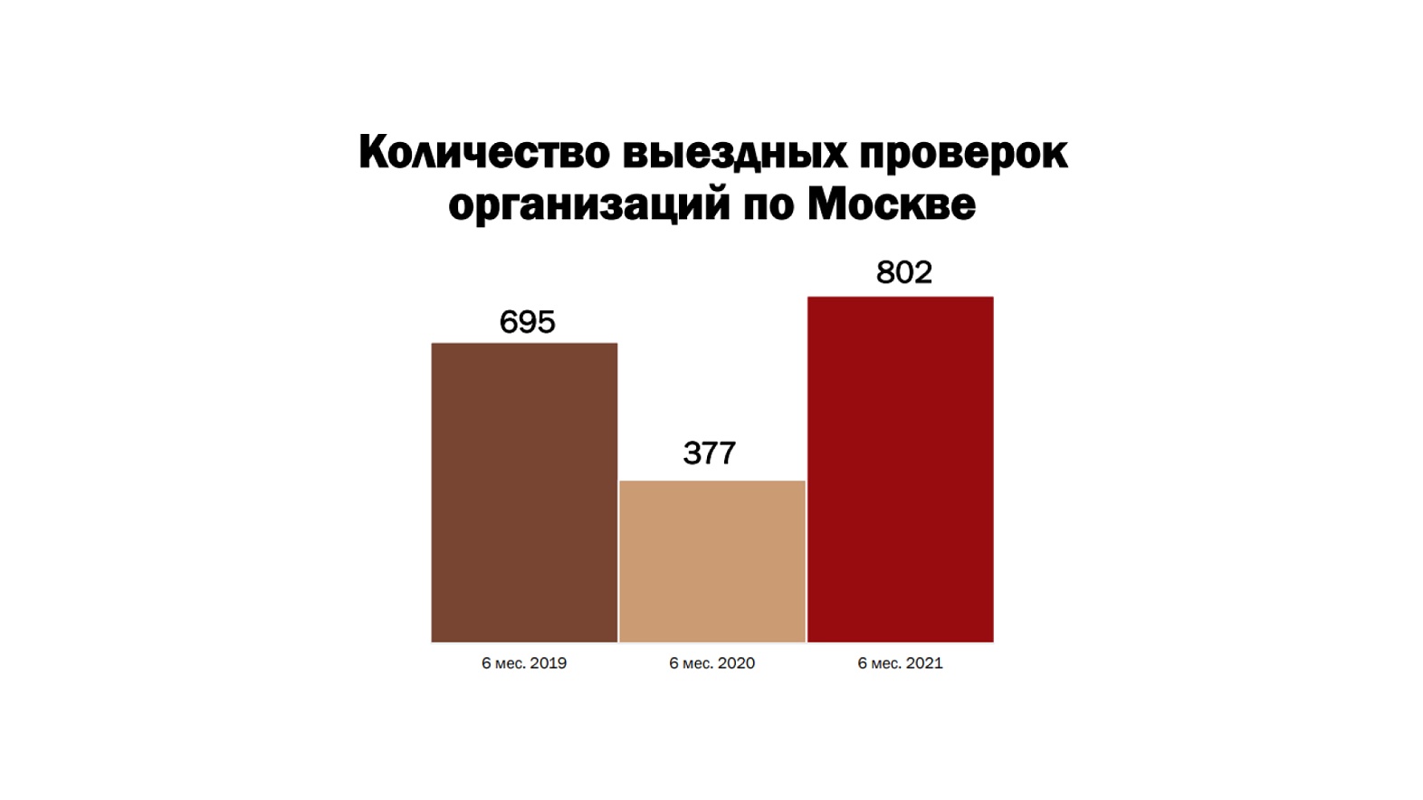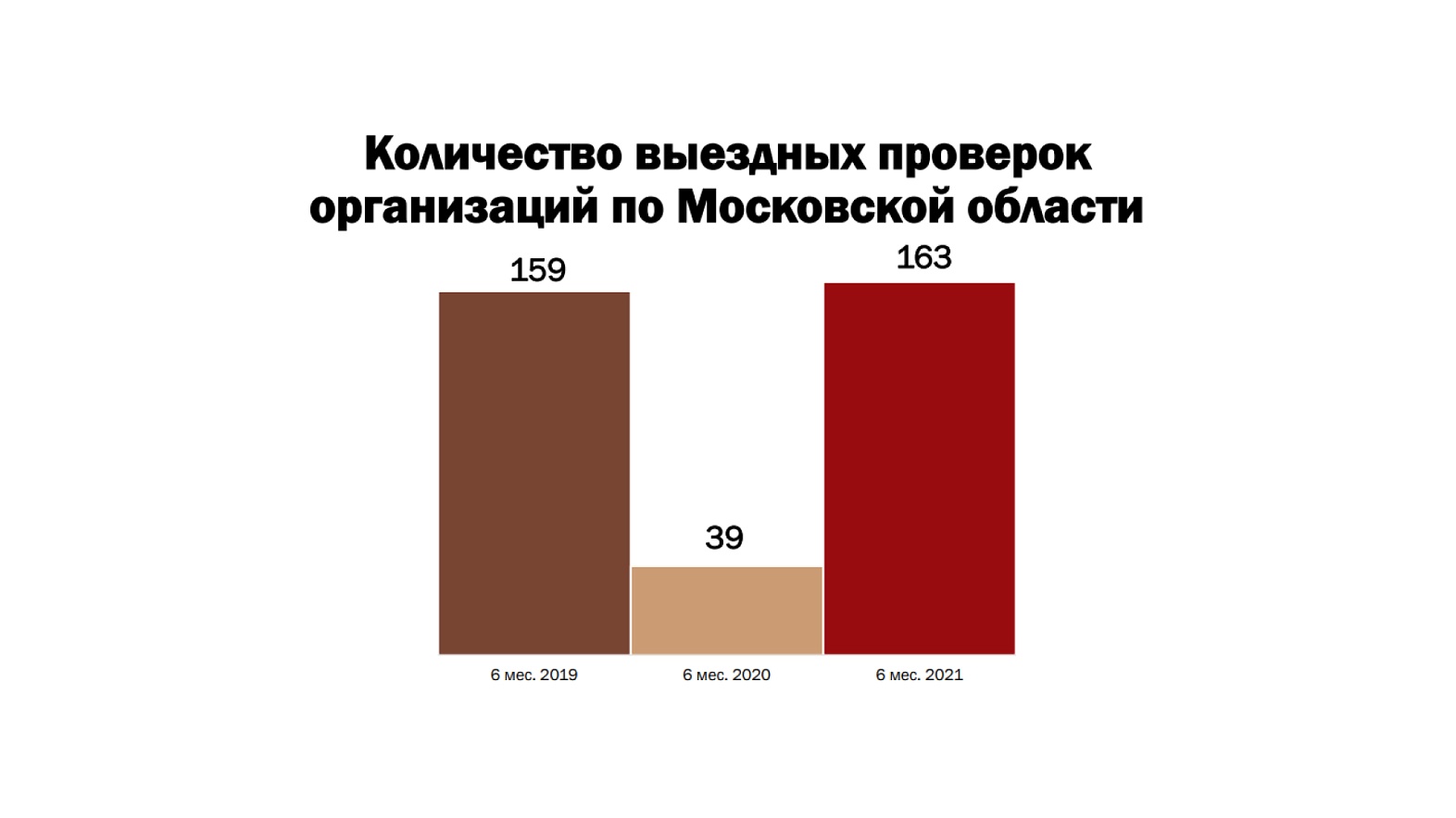 В 2020 году за аналогичный период проверено 377 компаний, из них 353 проверки с доначислениями 12,4 млрд руб. (из них налогов — 8,6 млрд руб.). В 2019 за 1-е полугодие было проведено 695 проверок, из них 659 принесли в бюджет дополнительно 22,6 млн руб. (16,3 млн — налоги).