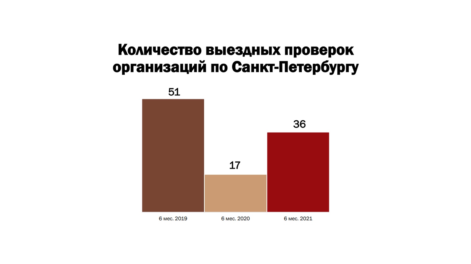 В северной столице за 6 месяцев 2021 года проведено 36 выездных проверок организаций, из них 35 с доначислениями на общую сумму 4,7 млрд руб. (налоги — 3,1 млрд руб.).