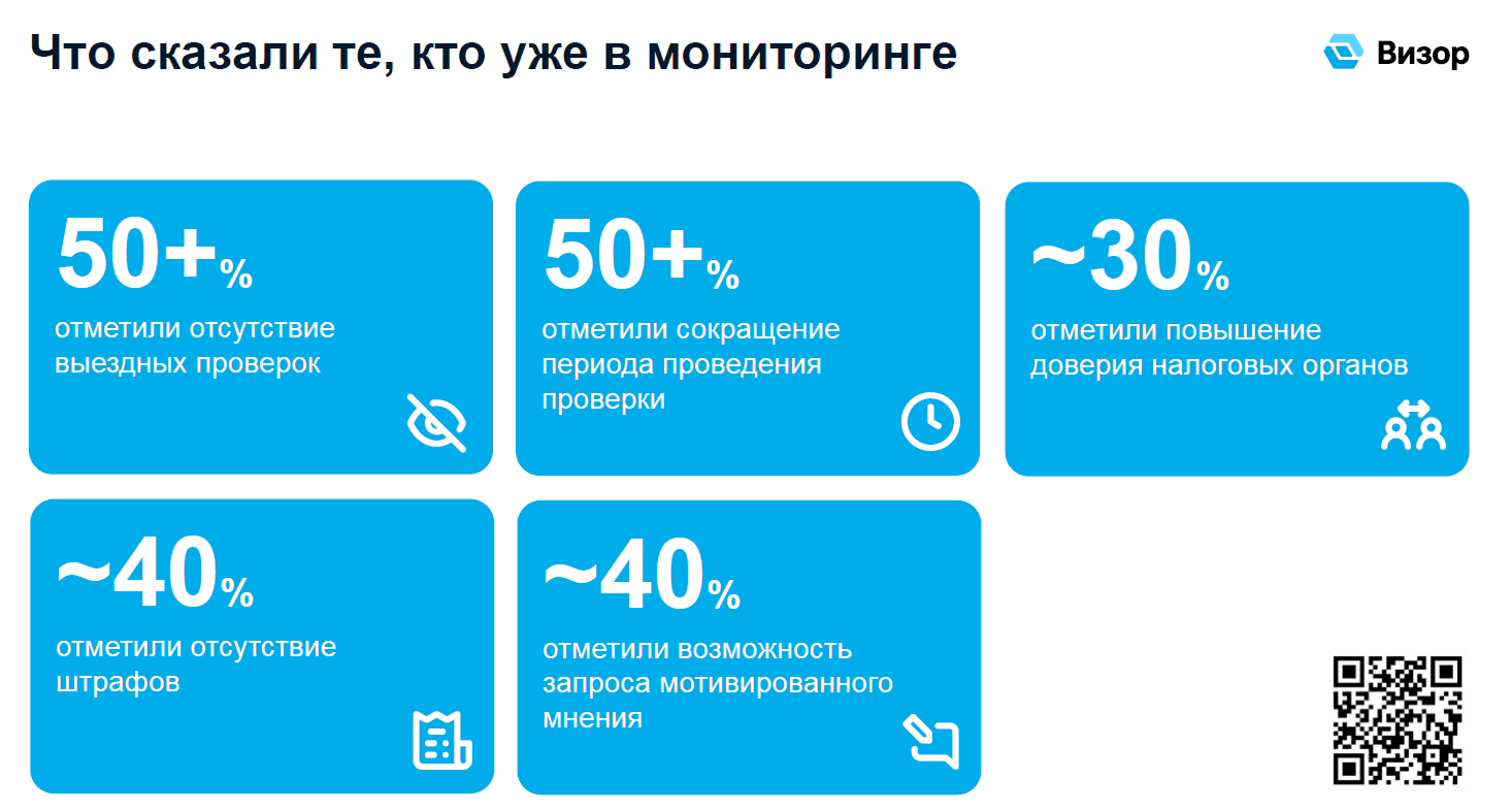 Согласно опросам, более 80% действующих участников полностью или частично удовлетворены режимом. Главными плюсами они называют отсутствие проверок, сокращение периода контроля и возможность урегулирования сложных вопросов через мотивированные мнения.