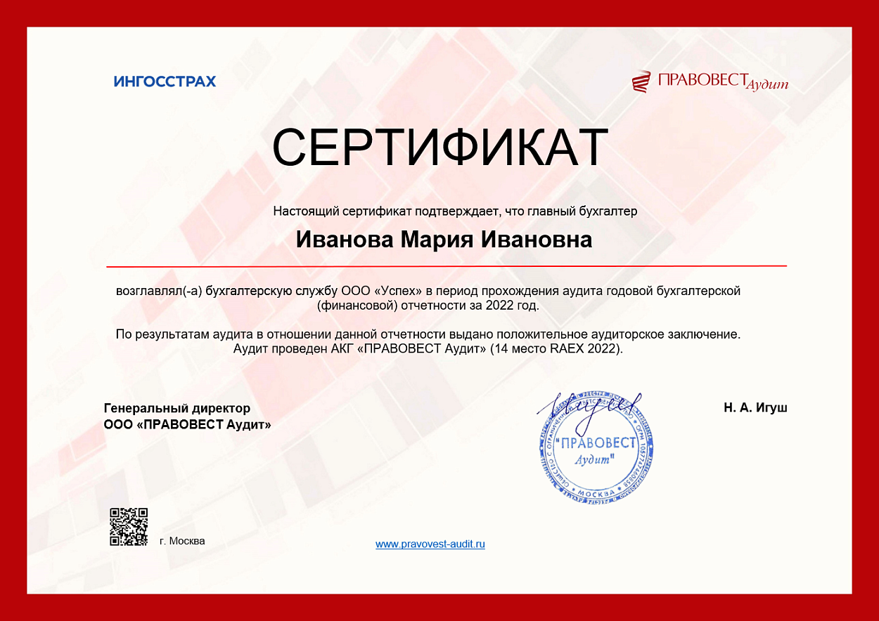 Наличие персонального сертификата главному бухгалтеру, финансовому директору о прохождении аудита — это еще один «плюс» к защите бухгалтеров от рисков субсидиарной, уголовной и материальной ответственности.