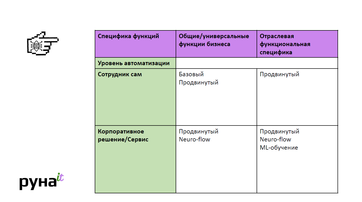 Поняв эту методологию, можно найти точки применения ИИ на пересечении общих и отраслевых функций, как на уровне отдельного сотрудника, так и в рамках корпоративных решений.