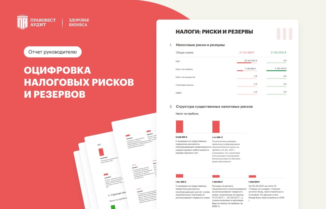 Суммы, выявленных налоговых рисков и резервов аудиторы и налоговые юристы покажут в «Отчете руководителю» по итогам аудита.